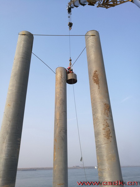在預(yù)報(bào)最冷的冬天,湖南航務(wù)公司給了我們長沙大秦一個(gè)深情的擁抱,讓我們參與在岳陽長江邊安裝浮動(dòng)船塢定位樁。
